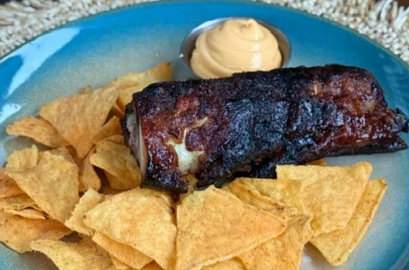 Яловиче ребро запечене в соусі BBQ/начос/соус сирний.
