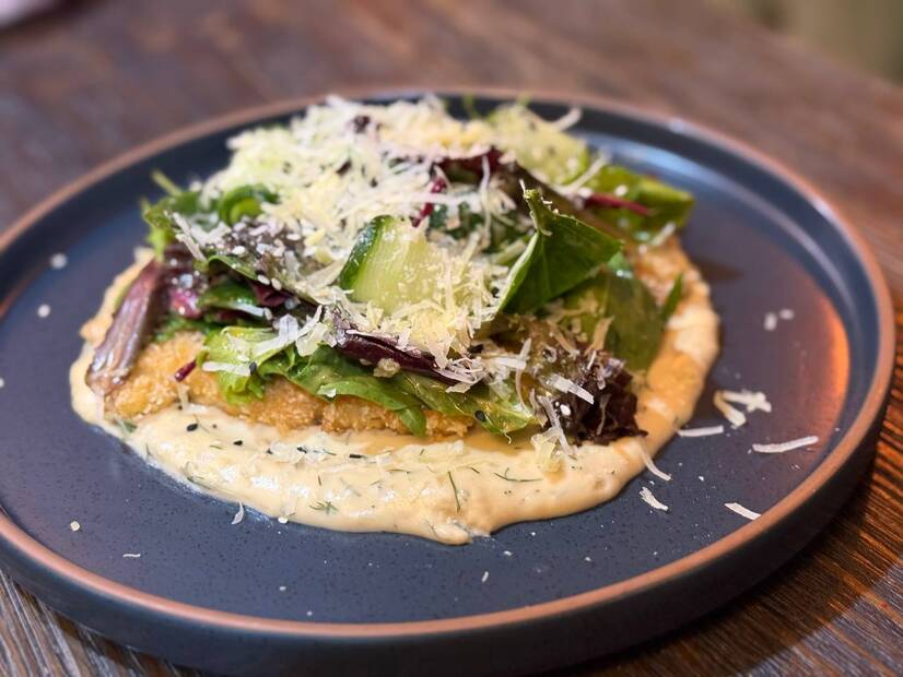 Шніцель свинний з пюре та пармезаном