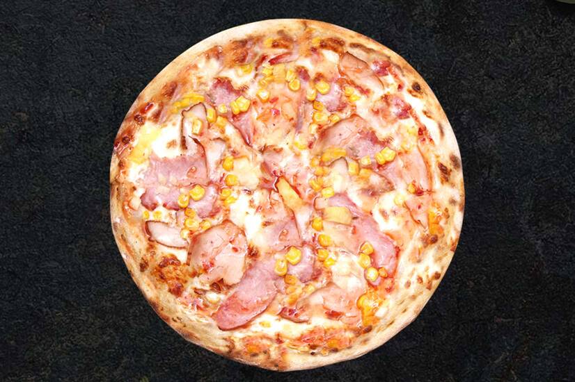 Соус часниковий, моцарелла, курка, балик, ананас, кукурудза, соус світ чілі