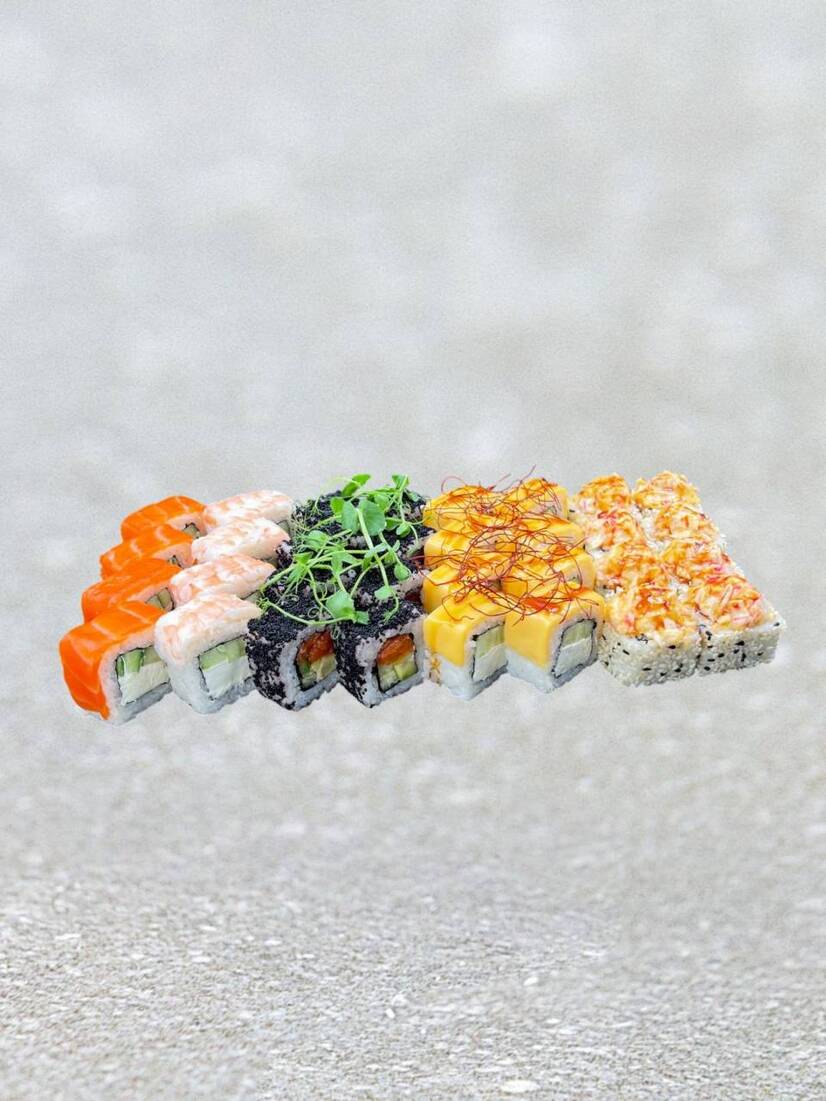 Філадельфія Чіз, Каліфорнія з лососем, Філадельфія мікс з лососем та тигровою креветкою, Які кані макі з сурімі крабом