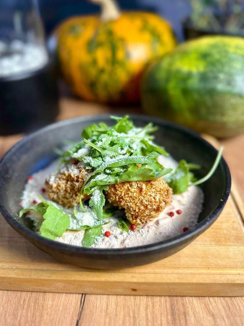Це поєднання класичних смаків, які заграли новими барвами. Ніжний кабачок, фарширований соковитим м'ясом з телятини та сирами дор блю і моцарелою. Подається з яскравим і насиченим томатним айолі. Свіжа рукола та пармезан робить страву по-справжньому вишуканою.