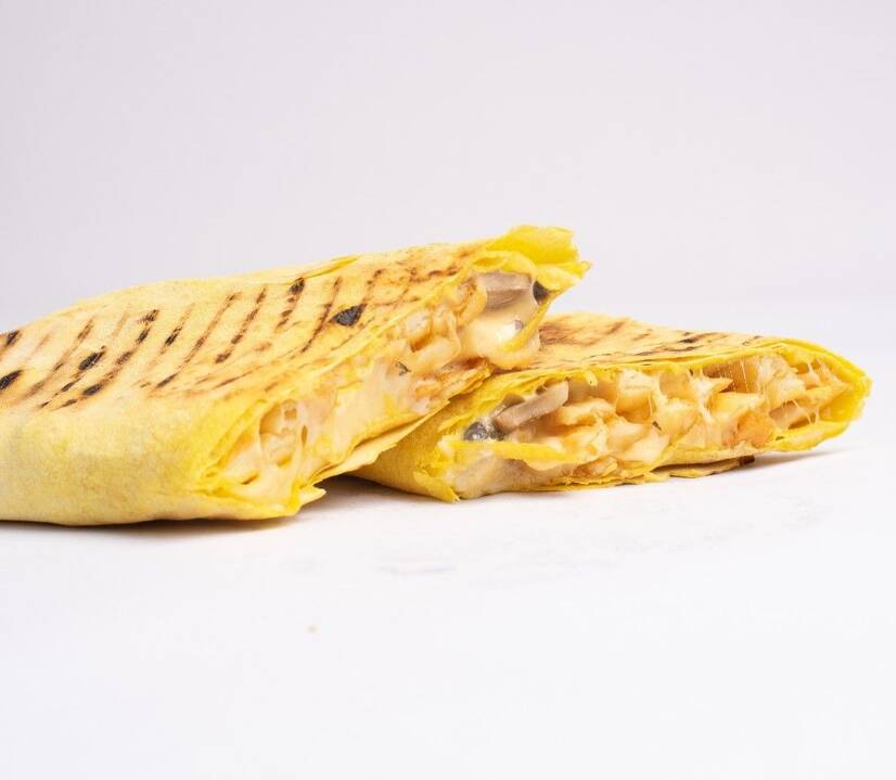Підсмажена курка, солоний огірок, багато твердого сиру Чеддер, насичений сирний соус.